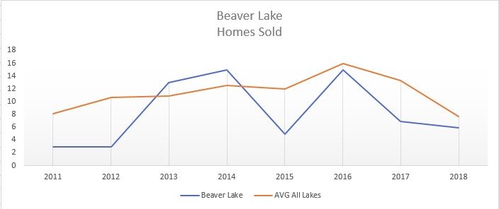 The graphs below provide home statistics for homes surrounding Beaver Lake in the Lake Country area.