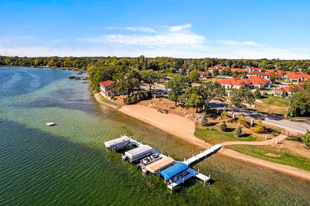 Experience luxury lake living in this custom-built condo featuring high end finishes throughout. Stunning kitchen boasts sleek granite countertops, deluxe cabinetry and massive central island, perfect for food prep or casual dining. Soaring ceilings and cherry HWF throughout the main living space. Three spacious bedroom ensuites provides the opportunity for multiple primary suites. Lower level offers a professional-style home gym with rubberized flooring, full bath and large office with built in desk (could be 4th bedroom with egress added). Private patio with gas line for easy grilling and futured gas line for outdoor fireplace. Enjoy 662' of gated Silver Lake frontage and pier shared with 7 other owners. Each owner has their own boat slip. Condo fees include insurance for unit interior!