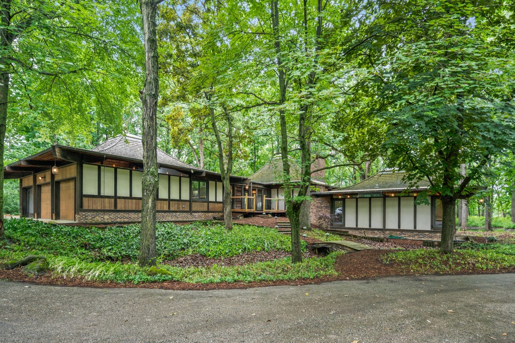 Step into a rare fusion of artistry and architecture in this striking mid-century modern house, masterfully designed by prominent Milwaukee Architect James G. Plunkett as his personal residence. Set on a generous lot nestled seamlessly into the landscape, this home embodies organic architecture with clean lines, natural materials, and a timeless aesthetic. Walls of glass blur the boundaries between indoors and out, flooding the open-concept living spaces with natural light and framing serene views of the surrounding landscape. The heart of the home is open and spacious creating a warm, inviting ambiance. The kitchen, tastefully updated in harmony with the architectural heritage. This one-of-a-kind property is more than a home--it's a living piece of design history.