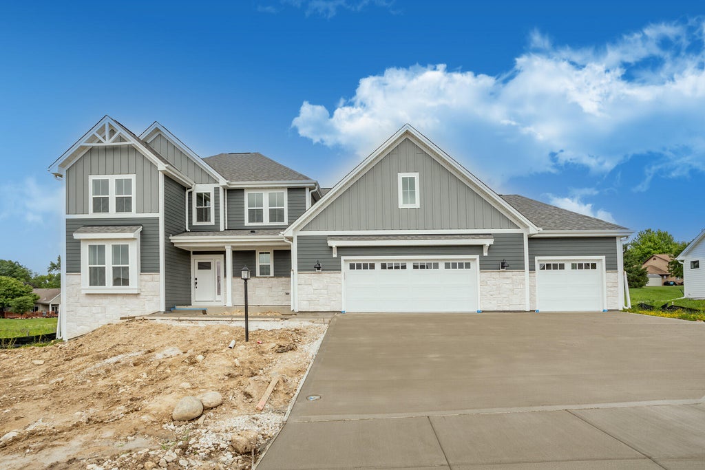 Welcome home to The AUBREY PLAN by Stepping Stone Homes, an award-winning home builder. Open floor plan features 4 Beds, 2.5 Baths and a 3 Car garage. This lot is a flat lot. The kitchen comes w/ quartz countertops, soft close cabinetry and LG appliance package. LVP flooring in kitchen, dinette, and great room. We equip our homes with Smart Technology such as a Ring Doorbell and touchless faucet. You will find quality craftsmanship throughout such as 2x6 construction exterior walls, undercabinet kitchen lighting, solid core doors, 9' first floor ceilings, and active radon system. Basement includes an egress window and is rough plumbed for bath. We offer a total Kohler/Sterling home experience. Seeding of yard is included with 2 street trees.