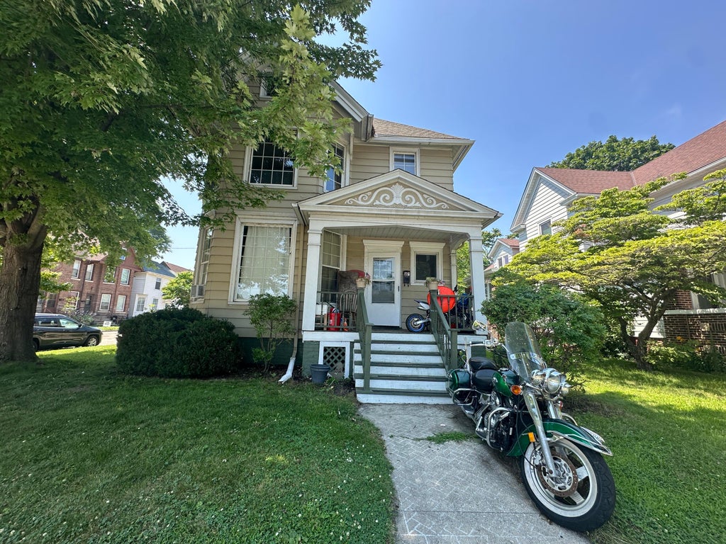 TURNKEY CASH FLOW in a PRIME LOCATION!This charming, fully rented 2-unit corner gem is a money-maker from day one & currently bringing in $1900/month! Just steps from St. Joseph School and St. John's Lutheran, this well-maintained duplex features a spacious 3-bed/1-bath upper unit with an eat-in kitchen, living room, and dining room. The 2-bed/1-bath lower unit boasts tall ceilings, large rooms, and tons of natural light. Full basement offers excellent storage, and the 2-car garage provides off-street parking--an added rental PERK! Exterior is made of DURABLE aluminum siding. Whether you're a seasoned investor or just getting started, this property is a cash-flowing winner in a high-demand area. Don't miss out!