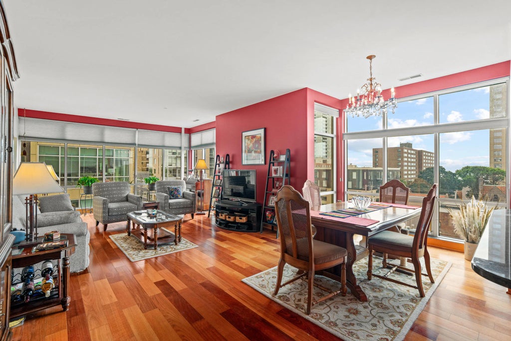 Located in Milwaukee's East Side is this bright, spacious, two bedroom plus den, two bathroom unit at The Sterling. Open floor plan boasts wood flooring and floor to ceiling windows which gives an abundance of natural light. Kitchen with granite counters, stainless appliances, backsplash and breakfast bar. Large living room with extra dining space. Private balcony with city views. In-unit laundry. One heated indoor parking space and storage unit. Enjoy the common amenities; fitness center and community room. Prime location for walking to restaurants, shopping, entertainment, Brady Street, North Avenue and the lakefront.