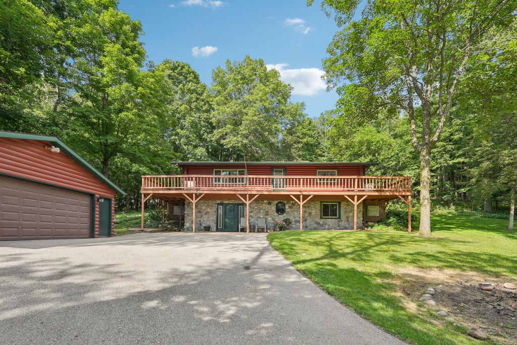 Relax on the wraparound deck of this private, secluded full-log home surrounded by a beautiful treetop canopy. The open-concept living room and kitchen feature custom hickory cabinets, Corian countertops, and a breakfast bar for four. Large windows invite fresh breezes and natural light, creating a true retreat feel. Don't miss your chance to own this peaceful getaway--schedule your private showing today!