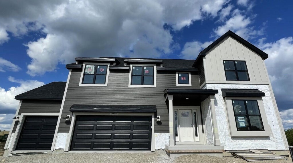 Driveway & Seeded yard included! The Sycamore-located in October Fields. This sprawling 2-story plan features upgrades throughout. Kitchen features stained hickory cabinets, quartz countertops, tiled backsplash, exterior vented range hood & spacious walk-in pantry. Great room off kitchen boasts a cathedral ceiling & has gas fireplace with stone detail + plenty of windows overlooking the backyard. Rear foyer has WIC for xtra storage & flex room includes French doors, making it a great office or playroom. 2nd floor features primary suite, 3 secondary bedrooms, hall bathroom, laundry rm & family rm. Primary has cathedral ceiling, WIC, tiled shower, freestanding tub & double vanities. LL has partial exposure, full bath rough in & space for future finishing. Estimated completion Nov.