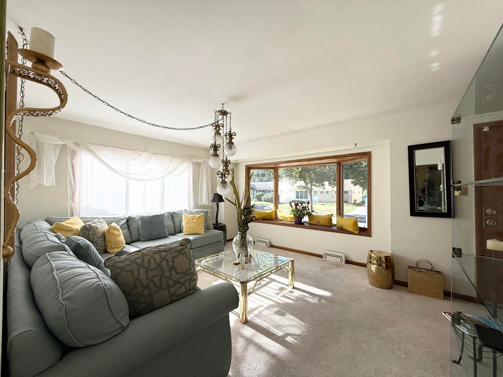 Back on market due to financing. Move in ready ranch 3 bedrooms, 1.5 baths, and a bright All Seasons Sunroom. Pride of ownership shines throughout w/ natural light, Beautiful Bay window, HWF under the carpet, gorgeous natural wood built-ins and cabinetry. The kitchen has stainless steel appliances and space for a table. The lower level includes a large recreation room ready for your design, a wet bar, large laundry/storage area, & a flex rm perfect for an office. Backyard-entertainer's dream with lush green space, a garden area, a fence and plenty of privacy. 2 car Garage EDO. Centrally located near Hmong American Peace Academy & minutes from Mayfair & shopping. Recent updates include fresh paint, new roof, siding, gutters, windows, newer A/C, water heater, furnace, and updated bathrooms.