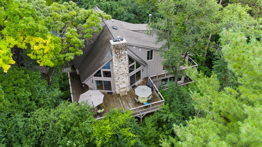 Welcome home to this incredibly unique, custom built, original owner home tucked on a private wooded lot in the Village of Wales. Professional landscaping, beautiful streams, 5 garage spaces, multi-level decks, large patio, and so much entertaining space! Walk in to an open concept living room with stunning floor to ceiling fireplace, amazing windows & vaulted ceiling, remodeled kitchen, & sunroom with wood burning stove. Two spacious bedrooms & two full baths round out the main level. Venture upstairs to a cozy loft, office space & private primary retreat that includes a fully remodeled bathroom & access to lofted library overlooking the sunroom. The lower level boasts a family room with gas fireplace, dedicated bar, large rec room, exercise room & laundry. Stunning home waiting for you!