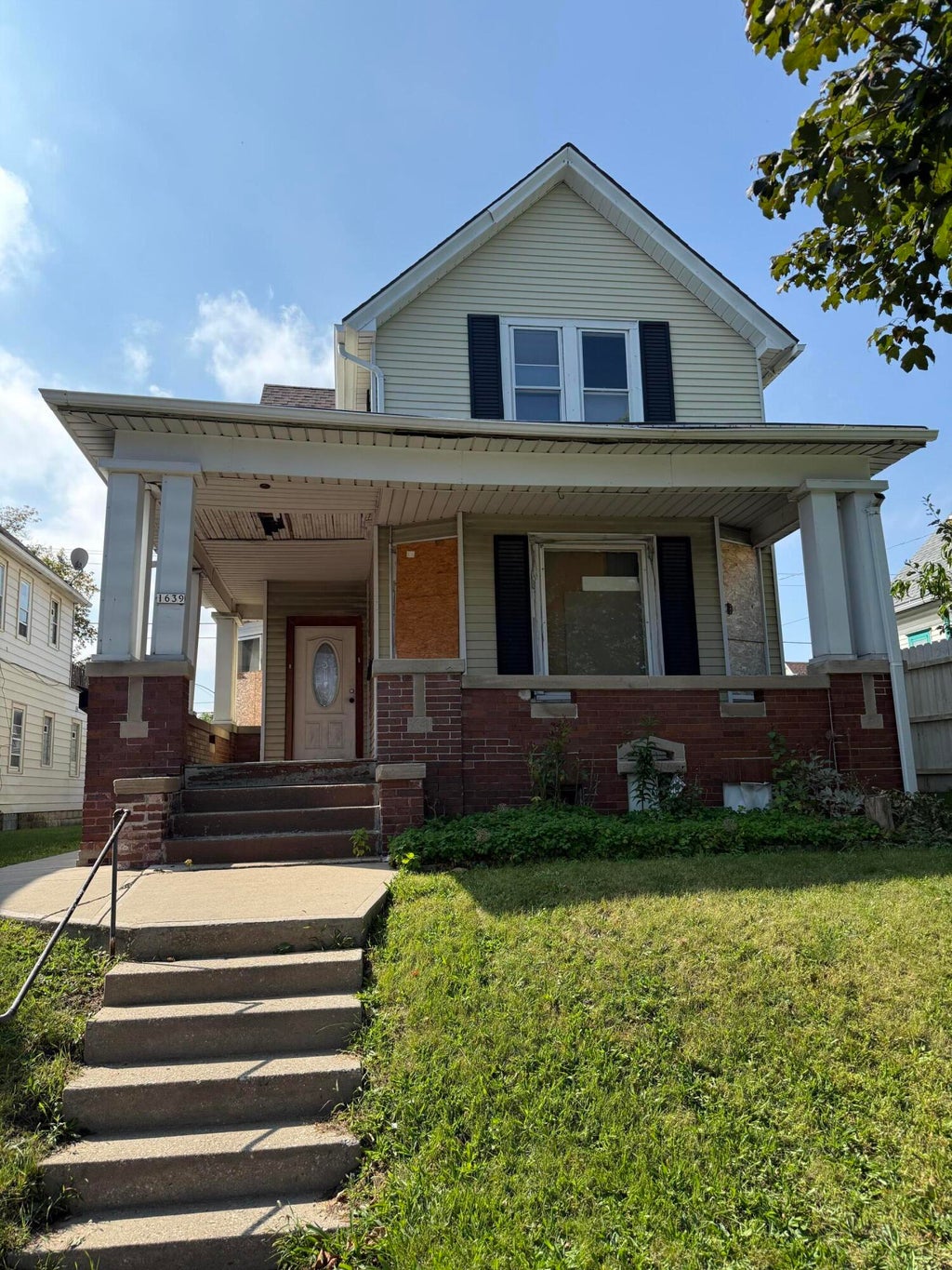 Investors delight! This blank canvas is ready for a savvy investor. Triplex; the first floor is framed for a 1-bedroom and 2-bedroom unit, the upstairs is framed for a 2-bedroom with a utility closet/laundry room. Each floor, even the basement, has tall ceilings. It is completely gutted. No furnaces, water heater, plumbing, or electrical. Seller did the framing, concrete parking, rubber roof, and basement block windows in 2025. Rubber roof area could possibly be a balcony if you replace a window with door and install a balustrade.