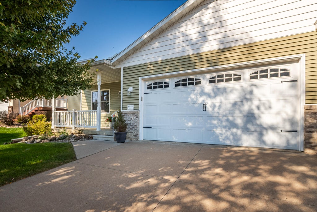 Sophisticated open-concept ranch-style twin home designed with comfort and elegance in mind. The sunlit kitchen shines with solid surface counters and quality finishes, flowing seamlessly into the dining and living areas with gleaming hardwood floors. Retreat to the master suite with a full bath and a walk-in closet. Main floor laundry adds ease to daily living. The finished lower level impresses with a spacious family room, egress windows, a bedroom, and a full bath. Step outside to a newer deck overlooking a beautifully maintained yard, perfect for outdoor enjoyment. The garage is enhanced with custom cabinetry, offering both style and function. A refined home that blends modern luxury with everyday convenience!