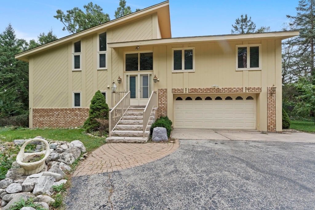 Tucked away on a private, wooded 1.62-acre lot in the Town of Delafield, this home offers that peaceful, ''away from it all'' feeling while still being just minutes from I-94, shopping, restaurants, and entertainment. Surrounded by mature trees, the property delivers both seclusion and convenience--a rare combo.Inside you'll find 3 bedrooms, 2 full baths, and a 2+ car garage, with sun-filled spaces thanks to large windows throughout. The updated kitchen features granite countertops, stainless appliances, and newer flooring that flows into the dining and great room areas. The main-floor bath has been beautifully remodeled with marble flooring, granite counters, and a large soaking tub perfect for unwinding.The primary suite includes a walk-in closet, a makeup vanity, and a private deck.
