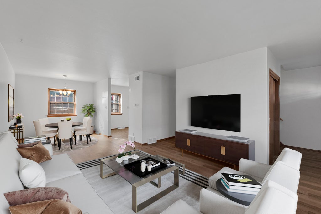 Spacious 3-bedroom, 1.5-bath condo featuring a bright eat-in kitchen and an open dining/living room combo with new LVP flooring. Real hardwood floors in all bedrooms add warmth and charm. Primary bedroom features a walk-in closet. Enjoy extra living space in the basement rec room--perfect for entertaining, a home office, or gym. Comfortable, stylish, and move-in ready!