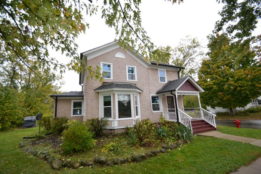 Updated Victorian with newer roof, air conditioning and deck! Large Family Room with vaulted and wood beamed ceiling and hardwood floors. Remodeled Granite Kitchen with granite center island, farmhouse sink, updated fixtures and wood laminate flooring. Beautiful Dining Room with bayed windows and hardwood floors. Living Room with hardwood floors. Main bath with vanity, shower over tub and wood wall moulding. Huge main floor laundry room with folding counter and storage cabinets. Open wooden staircase to upper 3 Bedrooms. Large yard, new wrap around deck and huge paved parking area with room for 10 cars!