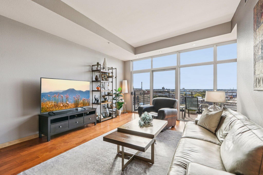 Live at the center of it all in this sleek 9th-floor condo at The Point on the River. Floor-to-ceiling windows & southern exposure fill this 1BR + den with natural light. Enjoy skyline views from your balcony including the Hoan Bridge, Clocktower, Viaduct & Menomonee River! Designed for modern living with hardwood floors throughout, upgraded lighting, stainless steel appliances and granite counters with a large island perfect for entertaining friends or unwinding. You'll love the convenience of in-unit laundry, heated garage parking and deeded storage. Building amenities feature concierge services & security, fitness center, movie theatre room, & a spacious social lounge. Step outside to kayak, dine, or explore Milwaukee's vibrant riverfront scene.