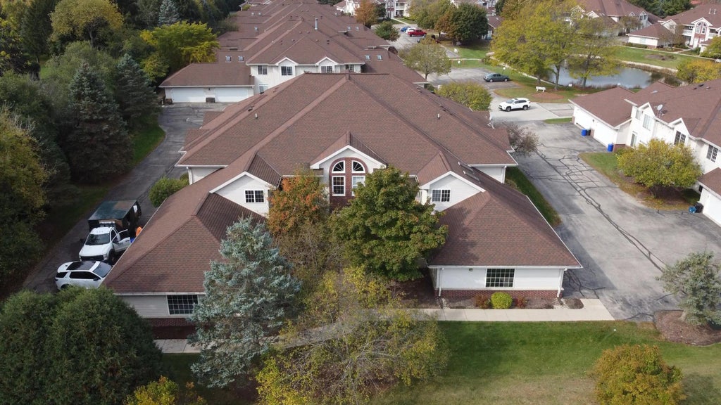 You just found the best condo in Harbours Parc! This corner unit offers stunning views of the park and woods, not parking lots or buildings. Inside, you'll love the soaring cathedral ceilings, cozy gas fireplace with stone surround, and stylish engineered hardwood floors. The open kitchen with snack bar and newer appliances flows into the dining area and living room with a built-in office nook. Enjoy two lofts, beautifully remodeled baths, and a spacious primary suite with a tray ceiling & large closets. Garage features a new epoxy floor, workbench, and fresh paint. New water heater, washer/dryer, HVAC in 2023, lighting, and hardware throughout. Exempt from 55+ restriction and located in the desirable Arrowhead School District!