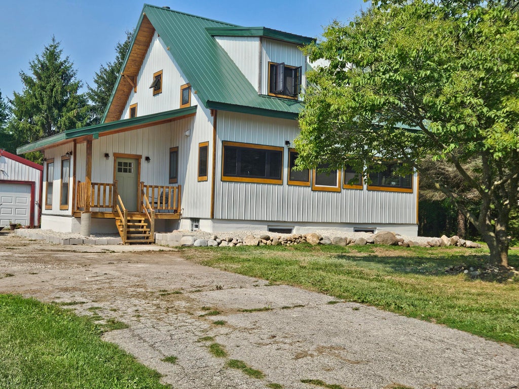 The original house was built in 1949. In 2020 the seller extensively expanded the property to 2600 sq ft of open concept living with 4+ bedroom, and 3 bathrooms The main floor boasts in-floor radiant heat, tiled floors in the kitchen, dining area, living room, main bedroom & bath. The open stairway leads to the upper 3 bedrooms & 2nd bath. The built-in bookcases grace the hallway between the bedrooms. The inviting living room offers a vaulted ceiling & wood stove & patio door to the large deck overlooking the backyard. The lower-level features in-floor radiant heat, the 3rd bath, a flex room or 5th bedroom & possible future family room options. There are 2 outbuildings (40x60 & 25x45) & a paved parking area