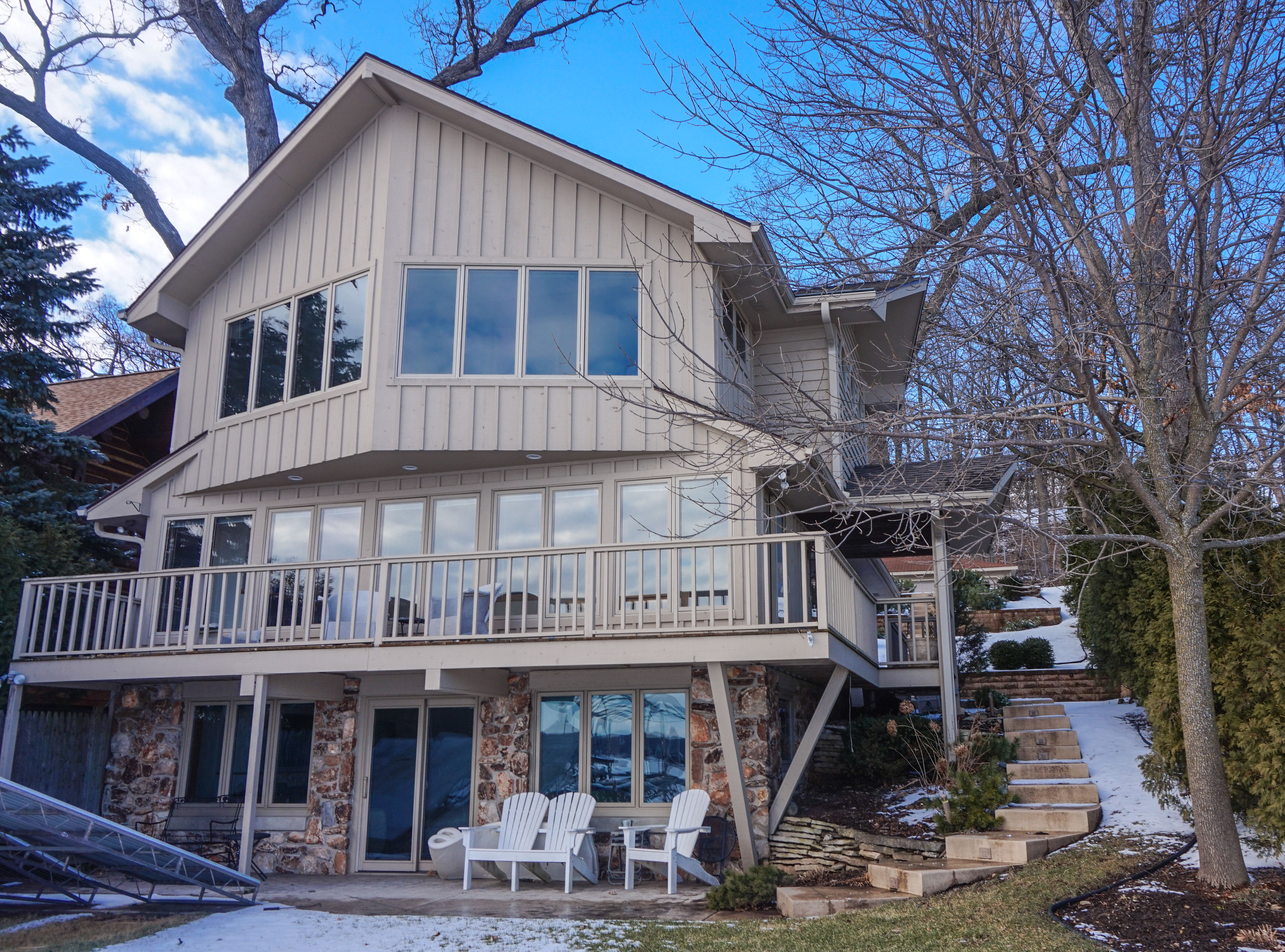 Finally an outstanding lake property at a great price! Hardwood floors, awesome views, Northwest lake frontage, new pier, concrete steps & landscaping are just the beginning! Main floor with great views from living room, kitchen, full bath & bedroom. Upstairs a beautiful master suite with private bath plus 2 more bedrooms & full bath. Redesigned walk-out lower family room allows for lots of lake living fun. Wet bar, gas fireplace, great views & remodeled full bath. A must see!